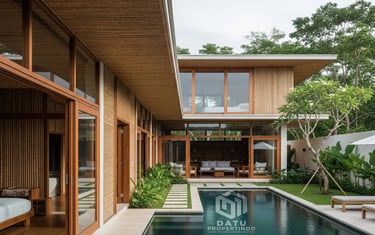 Vila modern dengan tata ruang terbuka dan kolam pribadi. dengan privasi dalam suasana tropis yang tenang.