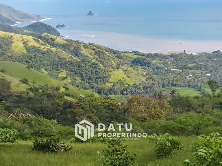 A panorama of hills with a wide view of the Lombok sea. A calm green landscape meets a beautiful coastline. This location offers an ideal space for exclusive villas with an open ocean view. A high value location for long term property investment.